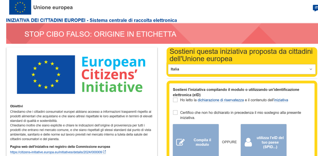 L’obiettivo è di raggiungere un milione di firme entro il 21 settembre 2025, per dire basta ai cibi importati e venduti come italiani e difendere la salute dei cittadini e il reddito degli agricoltori, estendendo l’obbligo dell’indicazione di origine in etichetta a tutti i prodotti alimentari in commercio nell’Ue.