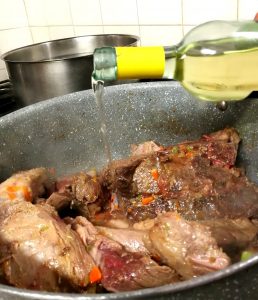 3) Quindi bagnate con il vino e lasciate evaporare.
