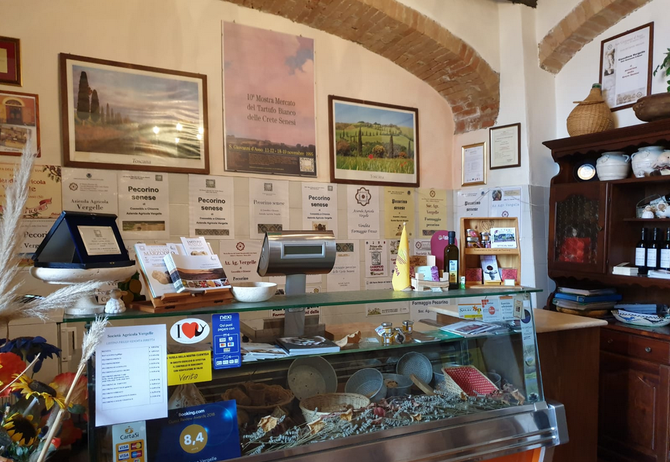 Nella quiete delle Crete Senesi, a ridosso della Val d'Orcia e dei vigneti di Montalcino, troviamo Vergelle, un antico e piccolissimo borgo situato sulle colline di San Giovanni d'Asso. Su queste colline l'azienda agricola Vergelle si dedica alla trasformazione del latte delle loro pecore in prelibate forme di formaggio. Ai metodi antichi si sono aggiunte tecniche innovative che ci danno dei formaggi con varie sfumature di gusto. In questa quiete unica al mondo, immersa in un paesaggio da cartolina d’altri tempi, l’azienda agrituristica Vergelle accoglie i propri ospiti in graziosi e confortevoli appartamenti, arredati con cura in perfetto stile rustico tipicamente toscano. Gli ospiti qui sono seguiti calorosamente dalla famiglia dei proprietari, che è sempre lieta di far visitare il caseificio artigianale dell’azienda, nel quale produce il prelibato formaggio pecorino delle Crete Senesi, che è possibile degustare e acquistare. Gli ospiti possono anche trascorre indimenticabili momenti di relax, godendo della piscina a loro disposizione, dalle quale si gode di un panorama unico sulle colline circostanti.