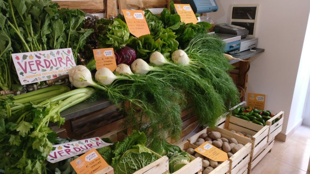 Il mercato è ubicato nel centro storico della città di Chieti, vicino al parcheggio di Piazza Garibaldi. Una decina di produttori portano al mercato una varietà di prodotti del territorio,cibi ricercati ma esclusivamente “contadini” e a km zero: dalle verdure biodinamiche all’olio biologico, dai formaggi sotto crusca ai salumi senza glutine, uova di quaglia, cereali antichi passando per le mele autoctone e il vino bio.