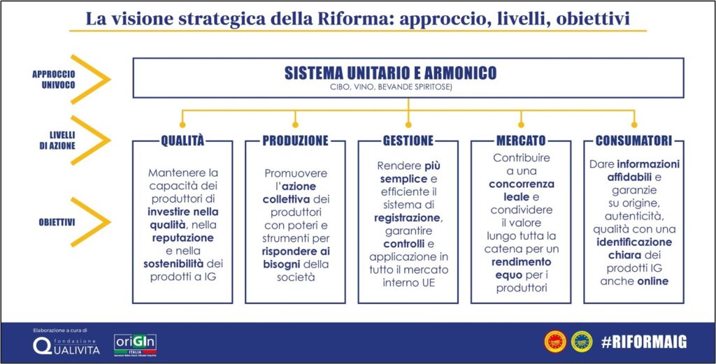 La visione strategia della riforma – con le novità introdotte – intende aumentare la protezione e rafforzare il settore delle Indicazioni Geografiche, ritenuto fondamentale nello scenario europeo da un punto di vista economico, ma anche a livello culturale e di sviluppo territoriale.